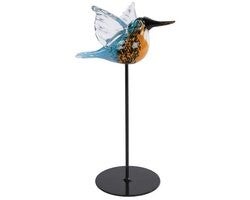 Sculptuur vogel "Kingfish" bruin/blauw glas 16x17,5x27cm